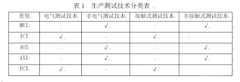 目前在電子組裝測試領域中使用的測試技術種類繁多,常用的有人工目視檢查(Manual Visual Inspection,簡稱MVI)、在線測試(In-CircuitTester,簡稱 ICT)、自動光學測試(AutomaticOptical Inspection,簡稱 AOI)、自動 X 射線測試(AutomaticX-ray Inspection,簡稱AXI)、功能測試(Functional Tester,簡稱 FCT)等。